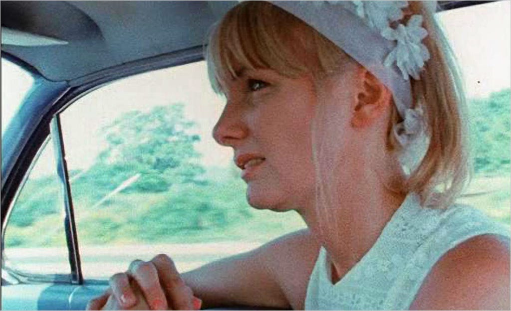 我更佩服的是芭芭拉·洛登自编自导自演的勇气,这个可以在百老汇饰演梦露化身的顶级女演员,这个顶级大导演伊利亚·卡赞的妻子,同样一张面孔和身体,当你把她放置到一个乡下的小镇,穿上减价的服装,男人就会开始对她的外貌和头发指指点点,然后按照自己的要求去打扮这个女人。而旺达在电影中仅有一次被穿上了一身白色蕾丝裙,头上包裹着白色小雏菊发带,像一个新婚妻子一样,坐上了贼车,走向了更加险峻的道路。
